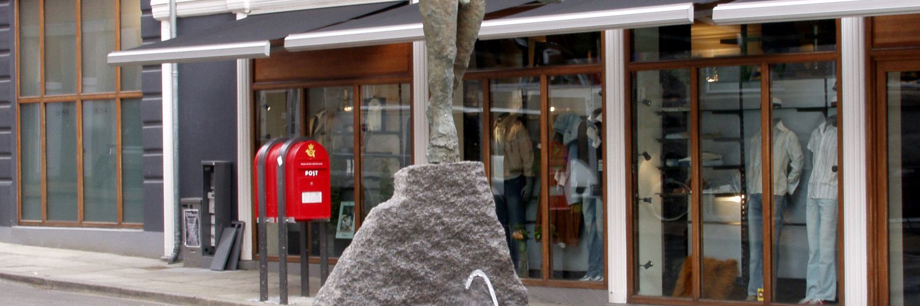 Måske er skulpturen ved drikkefontænen moren til de 3 løveunger i Midgårdsbrønden.